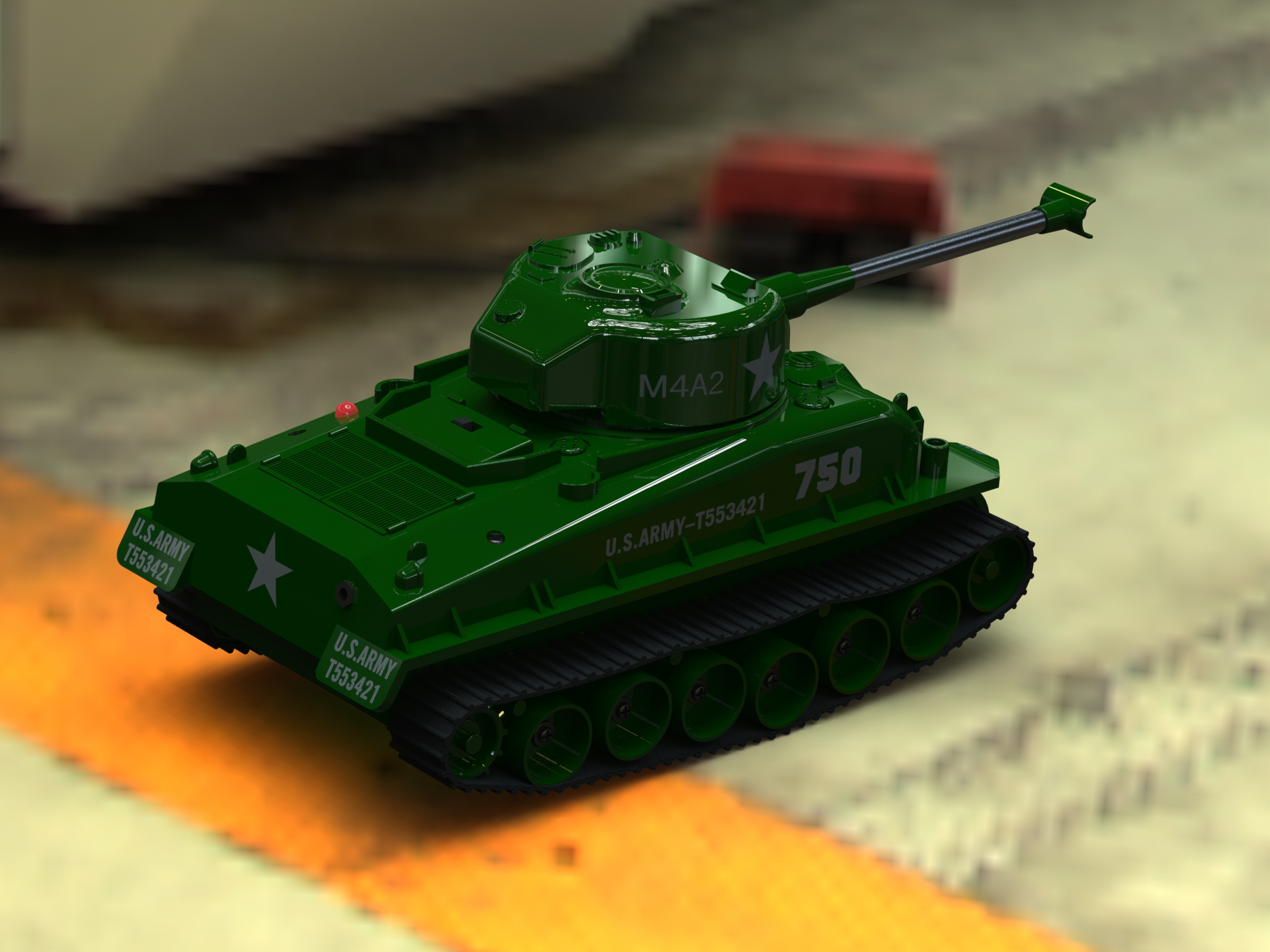 Tank toy design. Click here to view another flash animation of the tank. Move the slider at the bottom of the page to change tank's transparency |