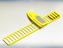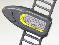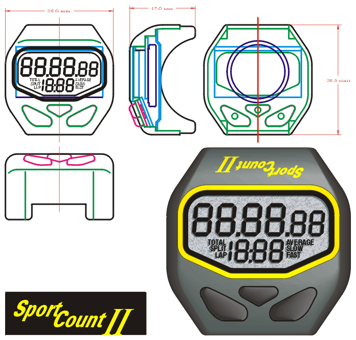 | I created the housing and performed the human factors engineering for Sportcount, Inc. This swimmer's lap counter is waterproof and is worn of the index finger of the athlete. Although originally intended for swimmers, it can be used by any one who's training involves laps and lap time. The first image is one of many suggested designs including physical models and graphic representations. The second image is the final design. The last image is one provided to the sports outfitter as an idea for a promotional item. You can purchase the latest version of the SportCount at http://www.sportcount.com. | |||||||||